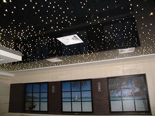 Последнее достижение в области дизайнерских инноваций – нанесение декоративной фотопечати на поверхность полотен. В детской украсит интерьер потолок звездное небо. Способов создания такого эффекта выделяют несколько: оптоволокна с проектором, люминесцентные краски, флуоресцентные наклейки.