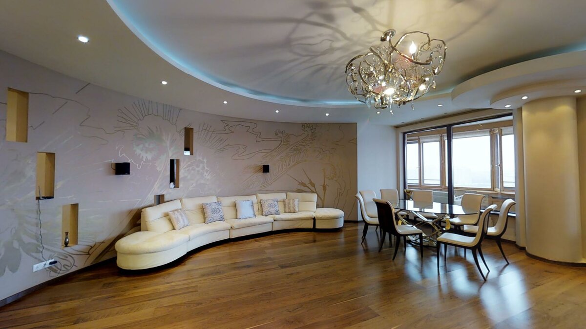 Достоинства таких потолков очевидны: эластичные материалы растягиваются, создавая ровные и гладкие поверхности, а благодаря разнообразию оттенков и фактур дизайнерские фантазии неограниченны.