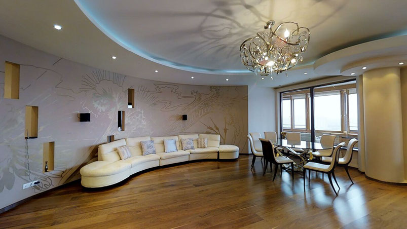 - Возможность поместить в такой потолок люстры, точечные светильники, пожарную сигнализацию;